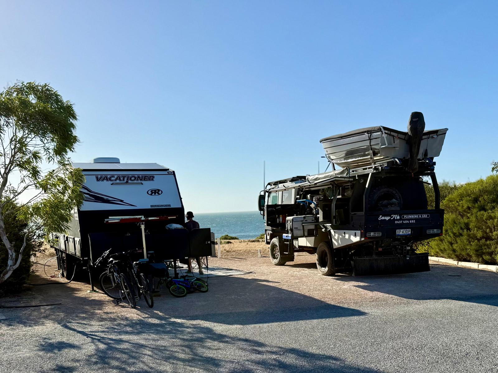 Die Ausrüstung australischer Campingfreunde ist beeindruckend: Boote, Outdoorküchen, Angelgeräte und Vans von gigantischen Ausmaßen. Für viele, meist Ruheständler, ist Camping längst zu einer Lebensform geworden. Seit zwei Jahren seien sie jetzt unterwegs, berichtet der entspannte ältere Nachbar in Salmon Gums, bisschen rumfahren, Angel ins Wasser, was will man mehr, sagt er und grinst. Richtig so.