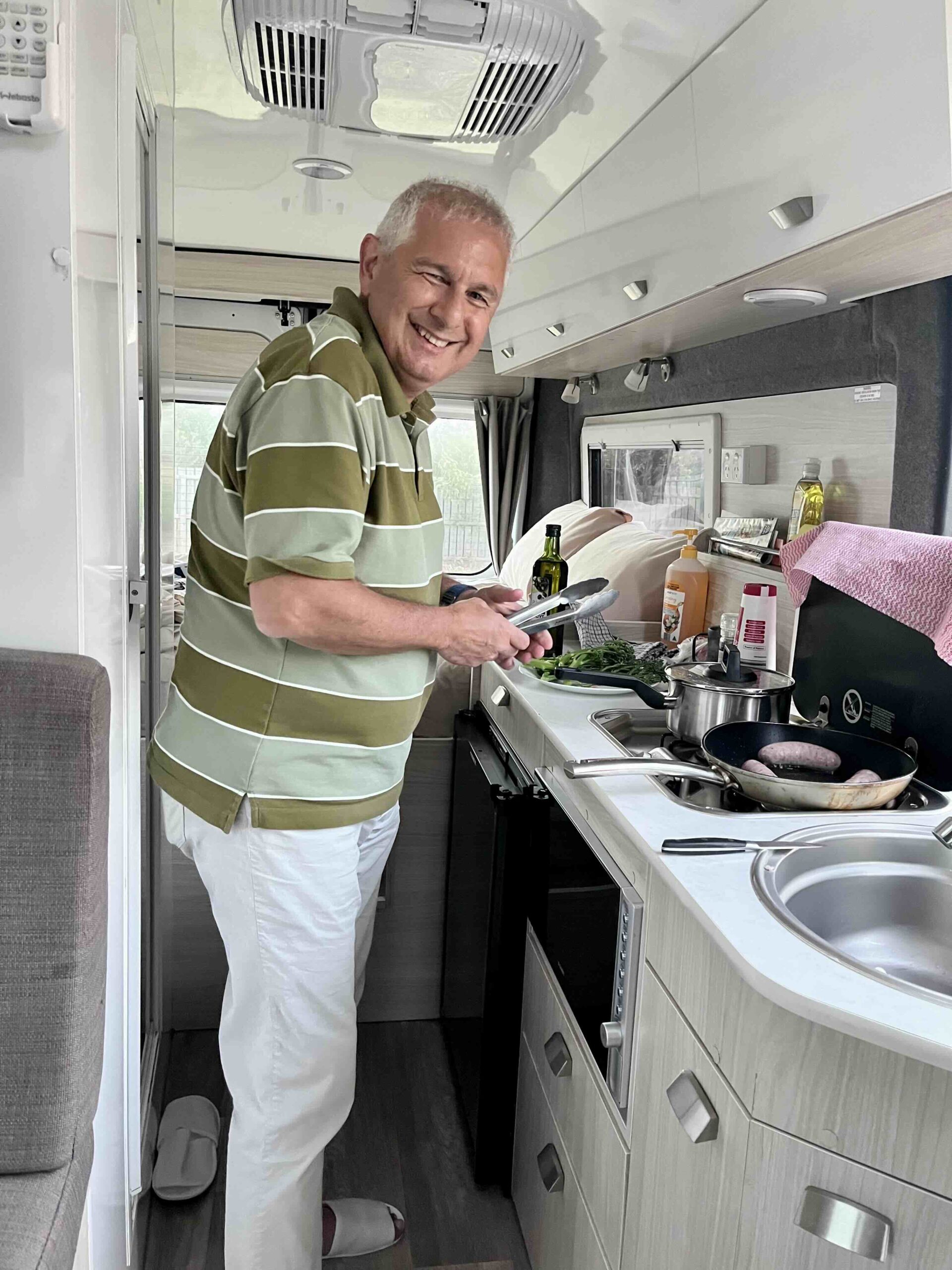 Überraschend unkompliziert war das Ankommen auf den Campingplätzen: Strom anschließen, Wasser verbinden, Tisch und Stühle raus – fertig in fünf Minuten. Der Aufbruch am nächsten Morgen ging ähnlich schnell, und das Verstauen aller Dinge – damit nichts klappert oder zu Bruch geht – wurde bald Routine.