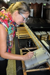 An einer etwas ruhigeren Seite der Buddhastatue ist ein kaum frequentierter Stand aufgebaut, dahinter ein paar Dachziegel und auf japanisch und englisch die Erklärung: für 1000 Yen kann man einen Ziegel mit seinem Namen und einem Wunsch beschriften, der Ziegel wird dann bei der nächsten Renovierung ins Dach über dem Buddha eingebaut und für die Wunscherfüllung sorgen. Was für eine schöne Vorstellung, an diesem ergreifenden Ort etwas zurückzulassen, das weiter besteht. Aber was soll ich mir wünschen? Gesundheit, Zufriedenheit, Weltfrieden oder so? Ich drehe eine weitere Runde um den Buddha und dann ist mir klar, dass es gerade keine Zeit für Wünsche ist, sondern vielmehr für etwas ganz anderes. Also gehe ich zurück zu dem Stand, überreiche meine 1000 Yen, der Mann legt mir einen Ziegel hin, reicht mir einen Pinsel und Tinte und ich schreiben in etwas wackligen Buchstaben „Danke“.