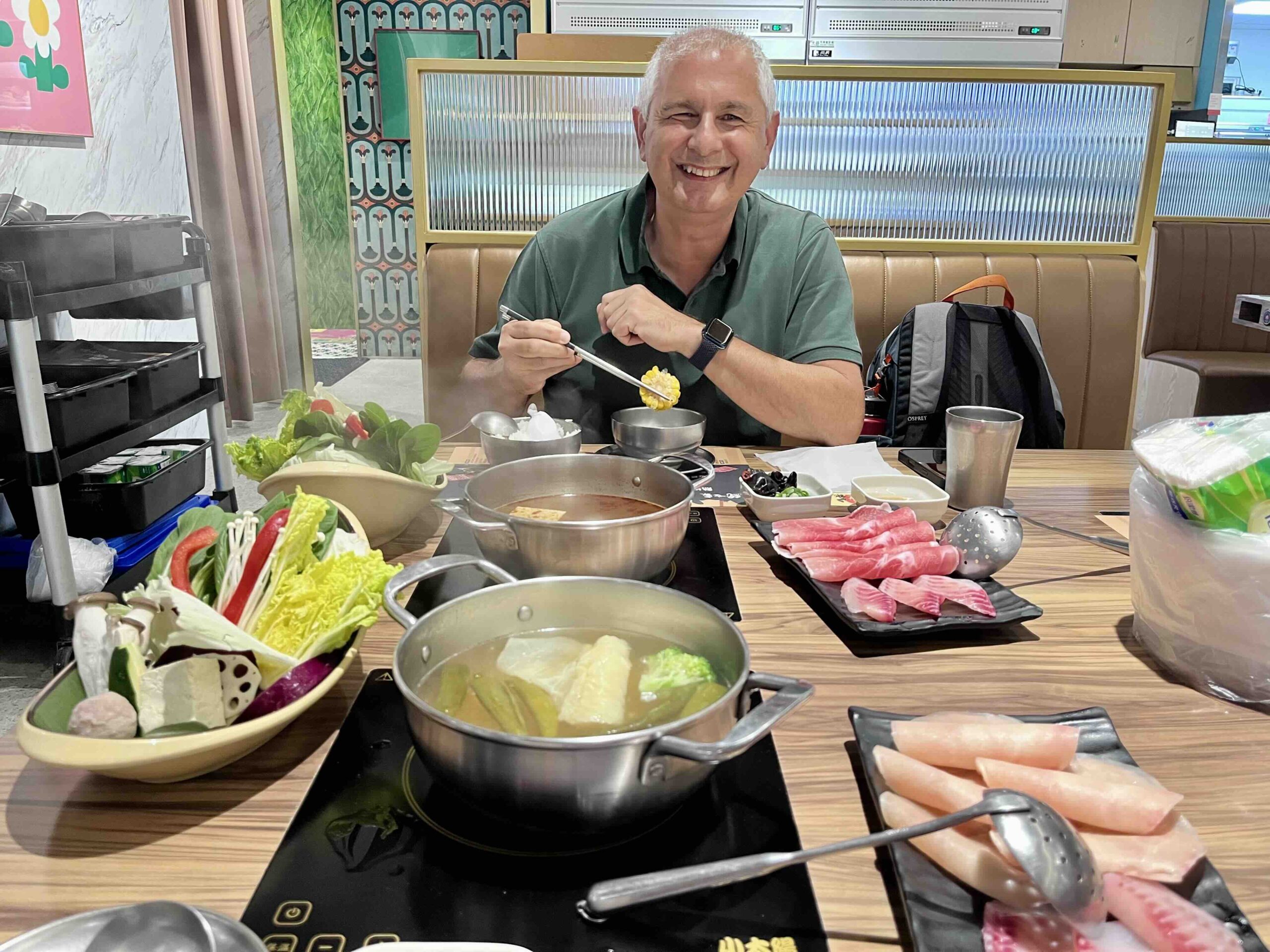 Dafür erleben wir unseren ersten Hot Pot – Essen zum Selberkochen am Tisch, große Teller mit Gemüse, Fleisch und Fisch wandern in die bestellte Brühe. Von unseren Tischnachbarn werden wir sehr freundlich und unaufdringlich eingeführt – da, an dieser Station mitten im Restaurant gibt es die Saucen, die hier ist besonders lecker, nehmt euch auf der Rückseite etwas zu trinken und zum Schluss unbedingt noch ein Eis.