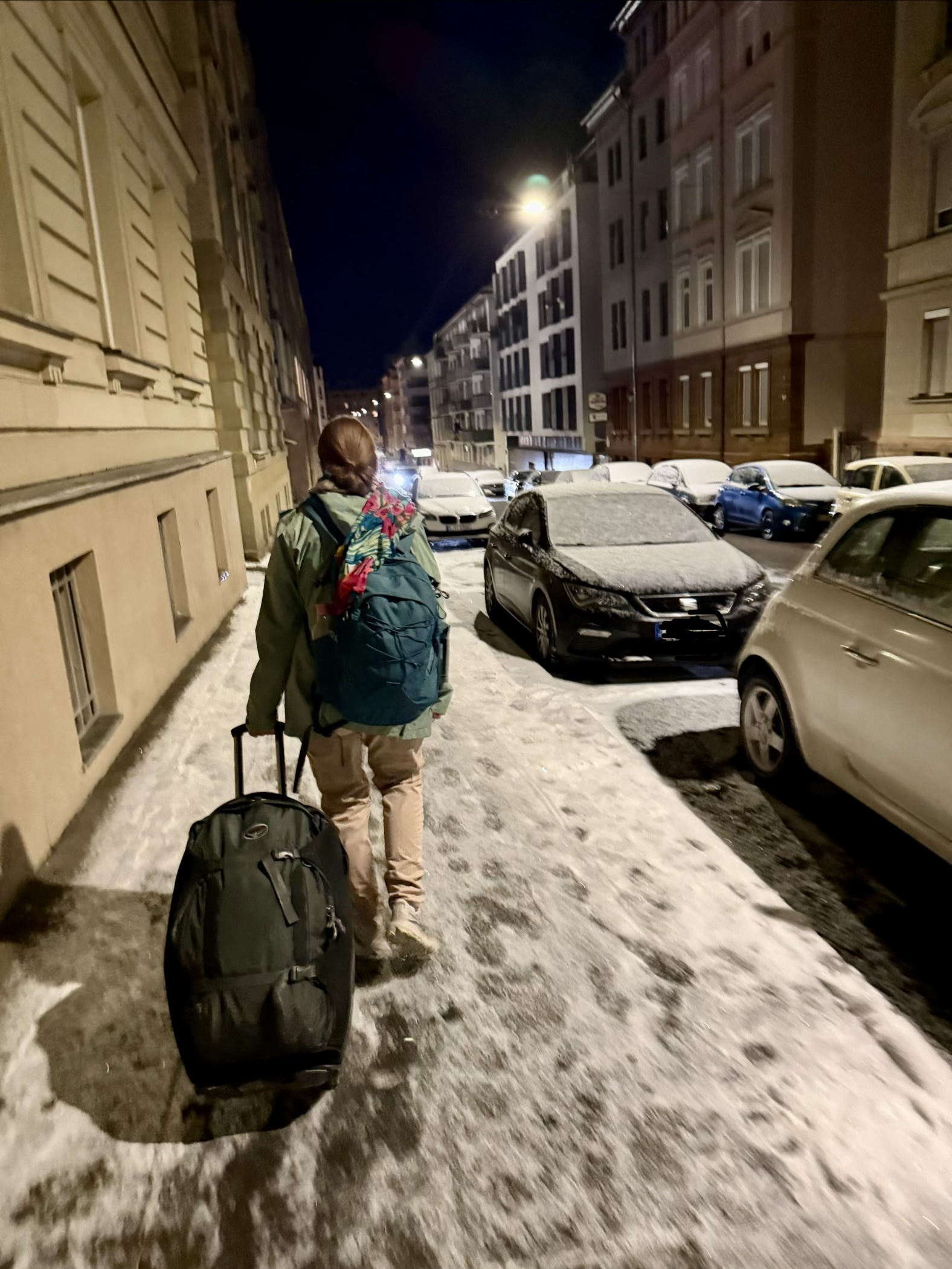 Übernächtigt und noch nicht ganz unbeschwert starten wir in den verschneiten Stuttgarter Morgen.