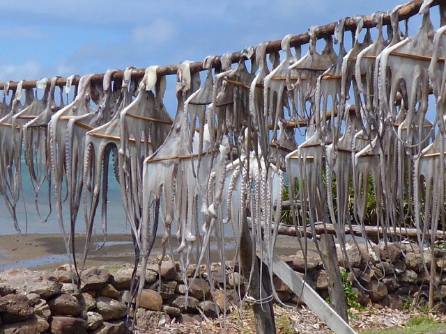 Zurück geht es immer an der Küste entlang, die Ausblicke sind atemberaubend, der Fahrtwind superangenehm, was für ein Erlebnis. Guilmette hat heute draußen gedeckt, wir essen Tintenfischcurry unterm Sternenhimmel und die Welt ist in Ordnung.